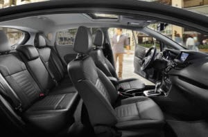 The Ford Fiesta features a spacious 85.1 cubic feet in its cabin for the five passengers that it can carry. The front features cloth bucket bolster seats, while the rear features a cloth bench. As for passenger space, riders in the front get 39.1 inches of headroom and 37.1 inches of space for their legs. Rear passengers get 37.1 inches of front headroom and 31.2 inches of legroom. This hatchback also includes 14.9 cubic feet of space for your cargo, which can actually increase to 25.4 cubic feet when you fold the second-row seats down.